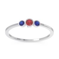 This Ruby and Blue Sapphire ring is the perfect addition to you wardrobe. Not only do we use the top 10% of gemstones available, we also make everything right here in New York City. Our Fashion Rings can be added to your collection of dainty rings, or even to your collection of stacking rings. This Ring Features Round Brilliant Gems Bezel Set in A Slender Modern Three Stone Setting. Customize And Build Your Own Gemstone Ring By Selecting The Gems And Metals Of Your Choice. Ditch the worry, embrace the shine with free shipping, returns, resizing and a lifetime warranty.