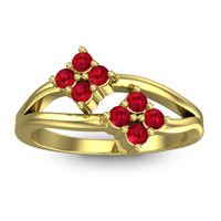 This 14k Yellow Gold Ruby ring is the perfect addition to you collection of Fashion Rings. From boardroom to beach bonfire, this transcends the ordinary. This Modern Ring Features 8 Round Brilliant Gems Of Your Choice in Cluster Settings On Each Arm Of The Split Shank Giving The Piece The Appearance Of Stackable Bands with Two Rings in One. Gone are the days of chunky statements and over-the-top sparkle. Today, people are gravitating towards the quiet confidence of minimalist jewelry. These pieces complement, rather than compete with, personal style, allowing individuality to shine through.