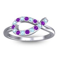 This Aquamarine and Amethyst ring is the perfect addition to you wardrobe. Not only do we use the top 10% of gemstones available, we also make everything right here in New York City. Our Fashion Rings can be added to your collection of dainty rings, or even to your collection of stacking rings. This Modern Ring Features 15 Round Brilliant Gems Of Your Choice in A Shared Prong Setting Over The Center Of The Looping Band. Ditch the worry, embrace the shine with free shipping, returns, resizing and a lifetime warranty.