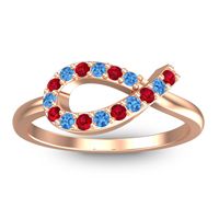 This Ruby and Swiss Blue Topaz ring is the perfect addition to you wardrobe. Not only do we use the top 10% of gemstones available, we also make everything right here in New York City. Our Fashion Rings can be added to your collection of dainty rings, or even to your collection of stacking rings. This Modern Ring Features 15 Round Brilliant Gems Of Your Choice in A Shared Prong Setting Over The Center Of The Looping Band. Ditch the worry, embrace the shine with free shipping, returns, resizing and a lifetime warranty.