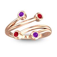 This Ruby and Amethyst ring is the perfect addition to you wardrobe. Not only do we use the top 10% of gemstones available, we also make everything right here in New York City. Our Fashion Rings can be added to your collection of dainty rings, or even to your collection of stacking rings. This Modern Design Features 4 Round Brilliant Gems Of Your Choice Bezel Set in A Fork Like Split Shank Bypass Setting. Ditch the worry, embrace the shine with free shipping, returns, resizing and a lifetime warranty.