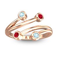 This Ruby and Aquamarine ring is the perfect addition to you wardrobe. Not only do we use the top 10% of gemstones available, we also make everything right here in New York City. Our Fashion Rings can be added to your collection of dainty rings, or even to your collection of stacking rings. This Modern Design Features 4 Round Brilliant Gems Of Your Choice Bezel Set in A Fork Like Split Shank Bypass Setting. Ditch the worry, embrace the shine with free shipping, returns, resizing and a lifetime warranty.