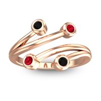 This Ruby and Black Onyx ring is the perfect addition to you wardrobe. Not only do we use the top 10% of gemstones available, we also make everything right here in New York City. Our Fashion Rings can be added to your collection of dainty rings, or even to your collection of stacking rings. This Modern Design Features 4 Round Brilliant Gems Of Your Choice Bezel Set in A Fork Like Split Shank Bypass Setting. Ditch the worry, embrace the shine with free shipping, returns, resizing and a lifetime warranty.
