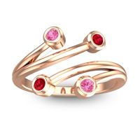 This Ruby and Pink Tourmaline ring is the perfect addition to you wardrobe. Not only do we use the top 10% of gemstones available, we also make everything right here in New York City. Our Fashion Rings can be added to your collection of dainty rings, or even to your collection of stacking rings. This Modern Design Features 4 Round Brilliant Gems Of Your Choice Bezel Set in A Fork Like Split Shank Bypass Setting. Ditch the worry, embrace the shine with free shipping, returns, resizing and a lifetime warranty.