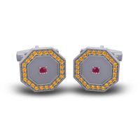 These personalized cufflinks feature Ruby and Citrine. We only use the top 10% of gemstones available, every facet meticulously placed, they create a masterpiece of radiance that captivates the senses. This Pair Of Cufflinks Features A Gemstone And Metal Design That Uses Simply Geometry To Create Elegant Forms. The Octagonal Face Is Accented with Gems Along The Border And At The Center To Highlight The Shape Of Your Piece Each Cufflink Hosts 25 Brilliant Round Gems Of Your Choice in A Pave Setting Over The Face Of The Piece. For the one who appreciates the finer things, these mens cufflinks are an unspoken badge of distinction. Choose from a variety of gems to make a truly unique pair of custom cufflinks. Enjoy free shipping, free returns and a lifetime warranty.