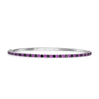 These 14k White Gold bracelets feature fine quality Amethyst gemstones. This 7-inch Bangle Bracelet Is A Timeless Treasure, Designed To Adorn Your Wrist with Undeniable Elegance. The Star Of The Show Is The Line Of Princess-cut Gemstones, Each Meticulously Faceted To Maximize Their Brilliance. Free shipping, returns, and a lifetime warranty make luxury worry-free