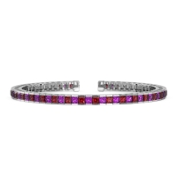 These Silver bracelets feature fine quality Amethyst gemstones. This Exquisitely Crafted Gemstone, Flexible Bangle Contours To Your Wrist Like A Whispered Secret, Its Hidden Flexibility Ensuring A Worry-free Fit. Dazzling Princess-cut Diamonds, Channel Set, Become Your Everyday Companions, Whispering Tales Of Effortless Brilliance. Free shipping, returns, and a lifetime warranty make luxury worry-free