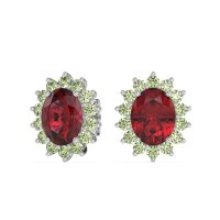 These Lab Ruby earrings and made in Platinum with top quality Lab Ruby and Peridot gemstones. Channel Timeless Elegance With These Exquisite Oval Halo Earrings, Inspired By The Legendary Style Of Princess Diana. Featuring A Brilliant Oval-cut Center Stone Encircled By A Dazzling Halo, These Earrings Exude Regal Sophistication And Classic Charm. Free shipping, returns, and a lifetime warranty make luxury worry-free
