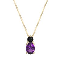This Amethyst and Black Onyx Necklace is casted in 14k Yellow Gold. This Women’s Classic necklace features exceptionally fine gemstones, on par with those found in the world's most exclusive boutiques and among the top 10% available globally. Elegant Pendant Featuring A Stacked Design with A Prominent Oval Stone Beneath A Smaller Round Stone. Classic Design. This necklace comes with a complimentary 18-inch chain. Enjoy the confidence of our 30-day, stress-free return policy—with return shipping fully covered. Each piece is also accompanied by a Lifetime Warranty, ensuring lasting beauty and peace of mind.