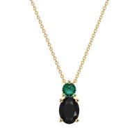 This Black Onyx and Emerald Necklace is casted in 14k Yellow Gold. This Women’s Classic necklace features exceptionally fine gemstones, on par with those found in the world's most exclusive boutiques and among the top 10% available globally. Elegant Pendant Featuring A Stacked Design with A Prominent Oval Stone Beneath A Smaller Round Stone. Classic Design. This necklace comes with a complimentary 18-inch chain. Enjoy the confidence of our 30-day, stress-free return policy—with return shipping fully covered. Each piece is also accompanied by a Lifetime Warranty, ensuring lasting beauty and peace of mind.
