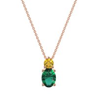 This Emerald and Citrine Necklace is casted in 18K Rose Gold. This Women’s Classic necklace features exceptionally fine gemstones, on par with those found in the world's most exclusive boutiques and among the top 10% available globally. Elegant Pendant Featuring A Stacked Design with A Prominent Oval Stone Beneath A Smaller Round Stone. Classic Design. This necklace comes with a complimentary 18-inch chain. Enjoy the confidence of our 30-day, stress-free return policy—with return shipping fully covered. Each piece is also accompanied by a Lifetime Warranty, ensuring lasting beauty and peace of mind.