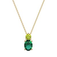 This Emerald and Peridot Necklace is casted in 14k Yellow Gold. This Women’s Classic necklace features exceptionally fine gemstones, on par with those found in the world's most exclusive boutiques and among the top 10% available globally. Elegant Pendant Featuring A Stacked Design with A Prominent Oval Stone Beneath A Smaller Round Stone. Classic Design. This necklace comes with a complimentary 18-inch chain. Enjoy the confidence of our 30-day, stress-free return policy—with return shipping fully covered. Each piece is also accompanied by a Lifetime Warranty, ensuring lasting beauty and peace of mind.