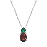 This Lab Ruby and Emerald Necklace is casted in Palladium. This Women’s Classic necklace features exceptionally fine gemstones, on par with those found in the world's most exclusive boutiques and among the top 10% available globally. Elegant Pendant Featuring A Stacked Design with A Prominent Oval Stone Beneath A Smaller Round Stone. Classic Design. This necklace comes with a complimentary 18-inch chain. Enjoy the confidence of our 30-day, stress-free return policy—with return shipping fully covered. Each piece is also accompanied by a Lifetime Warranty, ensuring lasting beauty and peace of mind.