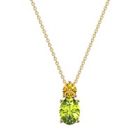 This Peridot and Citrine Necklace is casted in 14k Yellow Gold. This Women’s Classic necklace features exceptionally fine gemstones, on par with those found in the world's most exclusive boutiques and among the top 10% available globally. Elegant Pendant Featuring A Stacked Design with A Prominent Oval Stone Beneath A Smaller Round Stone. Classic Design. This necklace comes with a complimentary 18-inch chain. Enjoy the confidence of our 30-day, stress-free return policy—with return shipping fully covered. Each piece is also accompanied by a Lifetime Warranty, ensuring lasting beauty and peace of mind.
