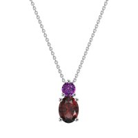 This Ruby and Amethyst Necklace is casted in Palladium. This Women’s Classic necklace features exceptionally fine gemstones, on par with those found in the world's most exclusive boutiques and among the top 10% available globally. Elegant Pendant Featuring A Stacked Design with A Prominent Oval Stone Beneath A Smaller Round Stone. Classic Design. This necklace comes with a complimentary 18-inch chain. Enjoy the confidence of our 30-day, stress-free return policy—with return shipping fully covered. Each piece is also accompanied by a Lifetime Warranty, ensuring lasting beauty and peace of mind.