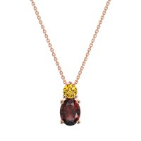 This Ruby and Citrine Necklace is casted in 18K Rose Gold. This Women’s Classic necklace features exceptionally fine gemstones, on par with those found in the world's most exclusive boutiques and among the top 10% available globally. Elegant Pendant Featuring A Stacked Design with A Prominent Oval Stone Beneath A Smaller Round Stone. Classic Design. This necklace comes with a complimentary 18-inch chain. Enjoy the confidence of our 30-day, stress-free return policy—with return shipping fully covered. Each piece is also accompanied by a Lifetime Warranty, ensuring lasting beauty and peace of mind.