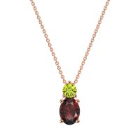 This Ruby and Peridot Necklace is casted in 18K Rose Gold. This Women’s Classic necklace features exceptionally fine gemstones, on par with those found in the world's most exclusive boutiques and among the top 10% available globally. Elegant Pendant Featuring A Stacked Design with A Prominent Oval Stone Beneath A Smaller Round Stone. Classic Design. This necklace comes with a complimentary 18-inch chain. Enjoy the confidence of our 30-day, stress-free return policy—with return shipping fully covered. Each piece is also accompanied by a Lifetime Warranty, ensuring lasting beauty and peace of mind.