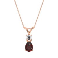 This Ruby and Lab Diamond Necklace is casted in 18K Rose Gold. This Women’s Classic necklace features exceptionally fine gemstones, on par with those found in the world's most exclusive boutiques and among the top 10% available globally. Beautiful Pendant Featuring A Pear-shaped Stone with A Round Accent Stone Nestled Directly Above. The Design Is Finished with A Distinctive Split Bail. This necklace comes with a complimentary 18-inch chain. Enjoy the confidence of our 30-day, stress-free return policy—with return shipping fully covered. Each piece is also accompanied by a Lifetime Warranty, ensuring lasting beauty and peace of mind.