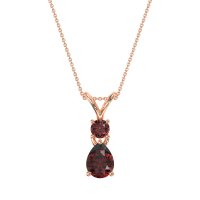 This Ruby Classic Necklace is casted in 14K Rose Gold. We use only exceptionally fine gemstones, truly on par with those found in the world's most exclusive boutiques and representing the top 10% available globally. Beautiful Pendant Featuring A Pear-shaped Stone with A Round Accent Stone Nestled Directly Above. The Design Is Finished with A Distinctive Split Bail. You'll get a complimentary 18-inch chain with every necklace. Plus, enjoy a 30-day, hassle-free return policy (we even cover return shipping!) and a Lifetime Warranty for peace of mind.