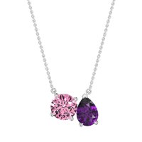 This Pink Tourmaline and Amethyst Necklace is casted in Palladium. This Women’s Classic necklace features exceptionally fine gemstones, on par with those found in the world's most exclusive boutiques and among the top 10% available globally. This Charming "toi Et Moi" Pendant Showcases Two Linked Stones: A Graceful Pear Shape Nestled Beside A Classic Round. This necklace comes with a complimentary 18-inch chain. Enjoy the confidence of our 30-day, stress-free return policy—with return shipping fully covered. Each piece is also accompanied by a Lifetime Warranty, ensuring lasting beauty and peace of mind.