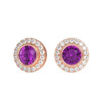 These Amethyst earrings and made in 14K Rose Gold with top quality Amethyst and Lab Diamond gemstones. These Round Bezel Halo Stud Earrings Showcase A Dazzling Round Center Stone Encircled By A Sleek Bezel Setting, Which Is Then Framed By A Sparkling Halo Of Smaller Stones. This Combination Creates A Captivating Blend Of Modern Sophistication And Classic Glamour. Designed For Secure Wear And Maximum Brilliance, These Studs Add An Eye-catching Glow To Any Outfit, Perfect For Both Everyday Elegance And Special Occasions. Free shipping, returns, and a lifetime warranty make luxury worry-free