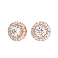 These 14K Rose Gold Lab Diamond earrings feature top quality Lab Diamond gemstones. These Round Bezel Halo Stud Earrings Showcase A Dazzling Round Center Stone Encircled By A Sleek Bezel Setting, Which Is Then Framed By A Sparkling Halo Of Smaller Stones. This Combination Creates A Captivating Blend Of Modern Sophistication And Classic Glamour. Designed For Secure Wear And Maximum Brilliance, These Studs Add An Eye-catching Glow To Any Outfit, Perfect For Both Everyday Elegance And Special Occasions. Free shipping, returns, and a lifetime warranty make luxury worry-free