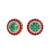 These Lab Emerald earrings and made in 14K Rose Gold with top quality Lab Emerald and Ruby gemstones. These Round Bezel Halo Stud Earrings Showcase A Dazzling Round Center Stone Encircled By A Sleek Bezel Setting, Which Is Then Framed By A Sparkling Halo Of Smaller Stones. This Combination Creates A Captivating Blend Of Modern Sophistication And Classic Glamour. Designed For Secure Wear And Maximum Brilliance, These Studs Add An Eye-catching Glow To Any Outfit, Perfect For Both Everyday Elegance And Special Occasions. Free shipping, returns, and a lifetime warranty make luxury worry-free