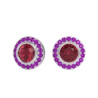 These Lab Ruby earrings and made in Platinum with top quality Lab Ruby and Amethyst gemstones. These Round Bezel Halo Stud Earrings Showcase A Dazzling Round Center Stone Encircled By A Sleek Bezel Setting, Which Is Then Framed By A Sparkling Halo Of Smaller Stones. This Combination Creates A Captivating Blend Of Modern Sophistication And Classic Glamour. Designed For Secure Wear And Maximum Brilliance, These Studs Add An Eye-catching Glow To Any Outfit, Perfect For Both Everyday Elegance And Special Occasions. Free shipping, returns, and a lifetime warranty make luxury worry-free