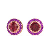 These Ruby earrings and made in 14K Rose Gold with top quality Natural Ruby and Amethyst gemstones. These Round Bezel Halo Stud Earrings Showcase A Dazzling Round Center Stone Encircled By A Sleek Bezel Setting, Which Is Then Framed By A Sparkling Halo Of Smaller Stones. This Combination Creates A Captivating Blend Of Modern Sophistication And Classic Glamour. Designed For Secure Wear And Maximum Brilliance, These Studs Add An Eye-catching Glow To Any Outfit, Perfect For Both Everyday Elegance And Special Occasions. Free shipping, returns, and a lifetime warranty make luxury worry-free