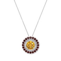This Citrine and Garnet Necklace is casted in 14k White Gold. This Women’s Halo necklace features exceptionally fine gemstones, on par with those found in the world's most exclusive boutiques and among the top 10% available globally. This Pendant Features A Round Stone Bezel-set inside A Milgrain Detailed Halo, And Then Surrounded By Another Halo Of Gemstones. This necklace comes with a complimentary 18-inch chain. Enjoy the confidence of our 30-day, stress-free return policy—with return shipping fully covered. Each piece is also accompanied by a Lifetime Warranty, ensuring lasting beauty and peace of mind.