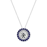 This Lab Diamond and Blue Sapphire Necklace is casted in 14k White Gold. This Women’s Halo necklace features exceptionally fine gemstones, on par with those found in the world's most exclusive boutiques and among the top 10% available globally. This Pendant Features A Round Stone Bezel-set inside A Milgrain Detailed Halo, And Then Surrounded By Another Halo Of Gemstones. This necklace comes with a complimentary 18-inch chain. Enjoy the confidence of our 30-day, stress-free return policy—with return shipping fully covered. Each piece is also accompanied by a Lifetime Warranty, ensuring lasting beauty and peace of mind.