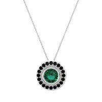 This Lab Emerald and Black Onyx Necklace is casted in 14k White Gold. This Women’s Halo necklace features exceptionally fine gemstones, on par with those found in the world's most exclusive boutiques and among the top 10% available globally. This Pendant Features A Round Stone Bezel-set inside A Milgrain Detailed Halo, And Then Surrounded By Another Halo Of Gemstones. This necklace comes with a complimentary 18-inch chain. Enjoy the confidence of our 30-day, stress-free return policy—with return shipping fully covered. Each piece is also accompanied by a Lifetime Warranty, ensuring lasting beauty and peace of mind.