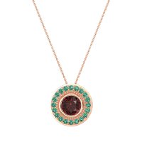 This Ruby and Emerald Necklace is casted in 18K Rose Gold. This Women’s Halo necklace features exceptionally fine gemstones, on par with those found in the world's most exclusive boutiques and among the top 10% available globally. This Pendant Features A Round Stone Bezel-set inside A Milgrain Detailed Halo, And Then Surrounded By Another Halo Of Gemstones. This necklace comes with a complimentary 18-inch chain. Enjoy the confidence of our 30-day, stress-free return policy—with return shipping fully covered. Each piece is also accompanied by a Lifetime Warranty, ensuring lasting beauty and peace of mind.