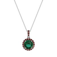 This Lab Emerald and Garnet Necklace is casted in Palladium. This Women’s Halo necklace features exceptionally fine gemstones, on par with those found in the world's most exclusive boutiques and among the top 10% available globally. This Pendant Features A Round-cut Central Stone Encircled By A Halo Of Smaller Stones. This necklace comes with a complimentary 18-inch chain. Enjoy the confidence of our 30-day, stress-free return policy—with return shipping fully covered. Each piece is also accompanied by a Lifetime Warranty, ensuring lasting beauty and peace of mind.