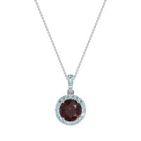 This Lab Ruby and Swiss Blue Topaz Necklace is casted in Palladium. This Women’s Halo necklace features exceptionally fine gemstones, on par with those found in the world's most exclusive boutiques and among the top 10% available globally. This Pendant Features A Round-cut Central Stone Encircled By A Halo Of Smaller Stones. This necklace comes with a complimentary 18-inch chain. Enjoy the confidence of our 30-day, stress-free return policy—with return shipping fully covered. Each piece is also accompanied by a Lifetime Warranty, ensuring lasting beauty and peace of mind.