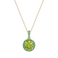 This Peridot and Emerald Necklace is casted in 14k Yellow Gold. This Women’s Halo necklace features exceptionally fine gemstones, on par with those found in the world's most exclusive boutiques and among the top 10% available globally. This Pendant Features A Round-cut Central Stone Encircled By A Halo Of Smaller Stones. This necklace comes with a complimentary 18-inch chain. Enjoy the confidence of our 30-day, stress-free return policy—with return shipping fully covered. Each piece is also accompanied by a Lifetime Warranty, ensuring lasting beauty and peace of mind.