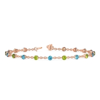 These 14K Rose Gold bracelets feature fine quality Swiss Blue Topaz gemstones. This Chain Bracelet Features Round Stones Going All The Way Around. Free shipping, returns, and a lifetime warranty make luxury worry-free