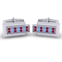 These personalized cufflinks feature Ruby and Swiss Blue Topaz. We only use the top 10% of gemstones available, every facet meticulously placed, they create a masterpiece of radiance that captivates the senses. This Pair Of Cufflinks Features A Gemstone And Metal Design That Is Minimalist And Modern. in A Rectangle Shaped Face, Gems Sit Above Another Plate Creating Depth And intrigue. Each Cufflink Hosts 14 Brilliant Round Gems Of Your Choice in A Pave Setting Over The Face Of The Piece. For the one who appreciates the finer things, these mens cufflinks are an unspoken badge of distinction. Choose from a variety of gems to make a truly unique pair of custom cufflinks. Enjoy free shipping, free returns and a lifetime warranty.