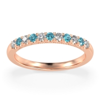 This Diamond wedding ring is casted in 18K Rose Gold and set with fine quality Diamond and Swiss Blue Topaz. All of the gemstones we use are of the top 10% available, those found in fine quality boutiques across the world. This Diamond wedding band can also be added to your collection of minimalist Diamond rings. This Band Showcases Round Stones in A Scallop Setting, with Delicate Milgrain Edging The Shank. Free shipping, returns, resizing, and a lifetime warranty ensure you love your purchase.
