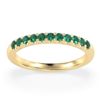 This Emerald wedding ring is set with AAAA Emerald, amongst the top 10% of material available. This ring can be casted in your choice of 9 metals. Emerald rings can be worn as gemstone wedding rings, or can even be stacked with your other gemstone rings. This Band Showcases Round Stones in A Scallop Setting, with Delicate Milgrain Edging The Shank. Choose from a variety of gems and metals to make truly unique custom rings! Free shipping, returns, resizing, and a lifetime warranty make choosing this product easy.