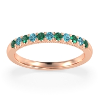 This Emerald wedding ring is casted in 18K Rose Gold and set with fine quality Emerald and Swiss Blue Topaz. All of the gemstones we use are of the top 10% available, those found in fine quality boutiques across the world. This Emerald wedding band can also be added to your collection of minimalist Emerald rings. This Band Showcases Round Stones in A Scallop Setting, with Delicate Milgrain Edging The Shank. Free shipping, returns, resizing, and a lifetime warranty ensure you love your purchase.
