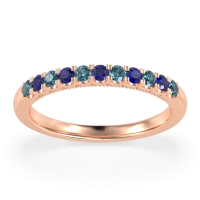 This London Blue Topaz wedding ring is casted in 18K Rose Gold and set with fine quality London Blue Topaz and Blue Sapphire. All of the gemstones we use are of the top 10% available, those found in fine quality boutiques across the world. This London Blue Topaz wedding band can also be added to your collection of minimalist London Blue Topaz rings. This Band Showcases Round Stones in A Scallop Setting, with Delicate Milgrain Edging The Shank. Free shipping, returns, resizing, and a lifetime warranty ensure you love your purchase.