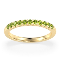 This Peridot wedding ring is set with AAAA Peridot, amongst the top 10% of material available. This ring can be casted in your choice of 9 metals. Peridot rings can be worn as gemstone wedding rings, or can even be stacked with your other gemstone rings. This Band Showcases Round Stones in A Scallop Setting, with Delicate Milgrain Edging The Shank. Choose from a variety of gems and metals to make truly unique custom rings! Free shipping, returns, resizing, and a lifetime warranty make choosing this product easy.
