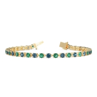 These 18k Yellow Gold bracelets feature fine quality Emerald gemstones. Exquisitely Crafted, This Modern Tennic Bracelet Showcases Sparkling Round Gems Nestled in Delicate Heart Settings, Linked By Airy Rings For A Touch Of Ethereal Beauty. Free shipping, returns, and a lifetime warranty make luxury worry-free