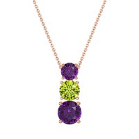 This Amethyst and Peridot Necklace is casted in 14K Rose Gold. This Women’s Classic necklace features exceptionally fine gemstones, on par with those found in the world's most exclusive boutiques and among the top 10% available globally. Graceful Vertical Pendant Featuring Three Round Stones Of Graduating Sizes. A Timeless And Elegant Design That Adds A Touch Of Sophistication. This necklace comes with a complimentary 18-inch chain. Enjoy the confidence of our 30-day, stress-free return policy—with return shipping fully covered. Each piece is also accompanied by a Lifetime Warranty, ensuring lasting beauty and peace of mind.