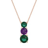 This Lab Emerald and Amethyst Necklace is casted in 14K Rose Gold. This Women’s Classic necklace features exceptionally fine gemstones, on par with those found in the world's most exclusive boutiques and among the top 10% available globally. Graceful Vertical Pendant Featuring Three Round Stones Of Graduating Sizes. A Timeless And Elegant Design That Adds A Touch Of Sophistication. This necklace comes with a complimentary 18-inch chain. Enjoy the confidence of our 30-day, stress-free return policy—with return shipping fully covered. Each piece is also accompanied by a Lifetime Warranty, ensuring lasting beauty and peace of mind.