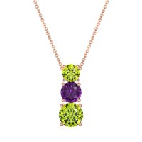 This Peridot and Amethyst Necklace is casted in 14K Rose Gold. This Women’s Classic necklace features exceptionally fine gemstones, on par with those found in the world's most exclusive boutiques and among the top 10% available globally. Graceful Vertical Pendant Featuring Three Round Stones Of Graduating Sizes. A Timeless And Elegant Design That Adds A Touch Of Sophistication. This necklace comes with a complimentary 18-inch chain. Enjoy the confidence of our 30-day, stress-free return policy—with return shipping fully covered. Each piece is also accompanied by a Lifetime Warranty, ensuring lasting beauty and peace of mind.