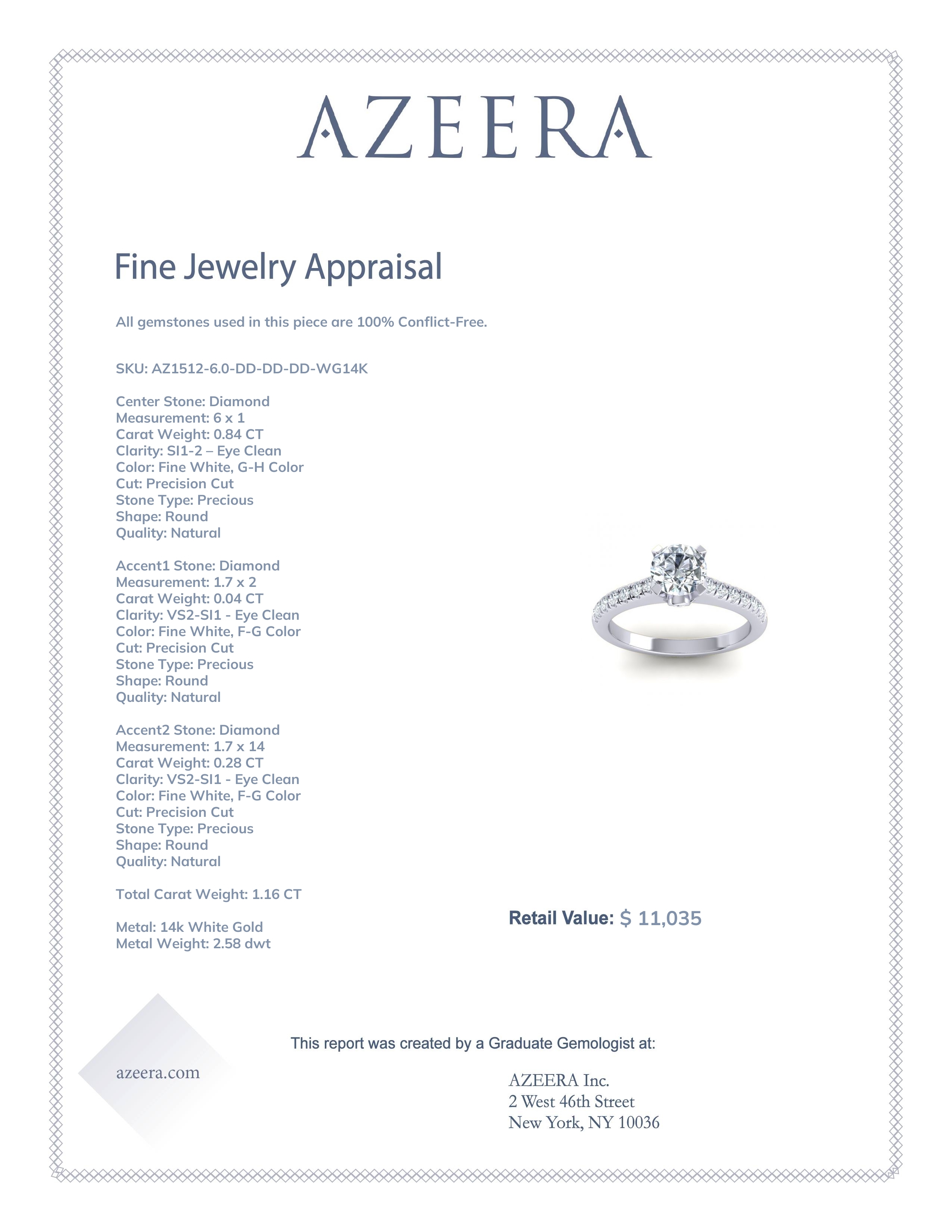 This 14k White Gold Diamond ring features a Round Diamond stone, found across the finest boutiques in the world. We only use gems that are within the top 10% of material available. This ring can be worn as an Diamond engagement ring, or can also be added to your collection of gemstone rings. This Sumptuous Design Is Perfect For Making A Statement. A Round Center Stone Is Held Between A 4 Prong Setting with Round Brilliants On The Profile To Provide Sparkles From All Angles. A Row Of Round Brilliants in A Scalloped Pave Setting Cascades Down The Band. We offer Free Shipping and Free Returns, along with a Free Resize. This ring also comes with a lifetime warranty which covers the integrity of our workmanship forever.