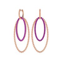 These 18K Rose Gold Amethyst earrings feature top quality Natural Amethyst gemstones. These Sophisticated Earrings Feature A Unique Double-hoop Design, One Hoop Beautifully Adorned With Intricate Beaded Detailing. The Inner, Gemstone Studded, Slightly Smaller Hoop Creates A Layered Effect, Adding Depth And Movement. Free shipping, returns, and a lifetime warranty make luxury worry-free