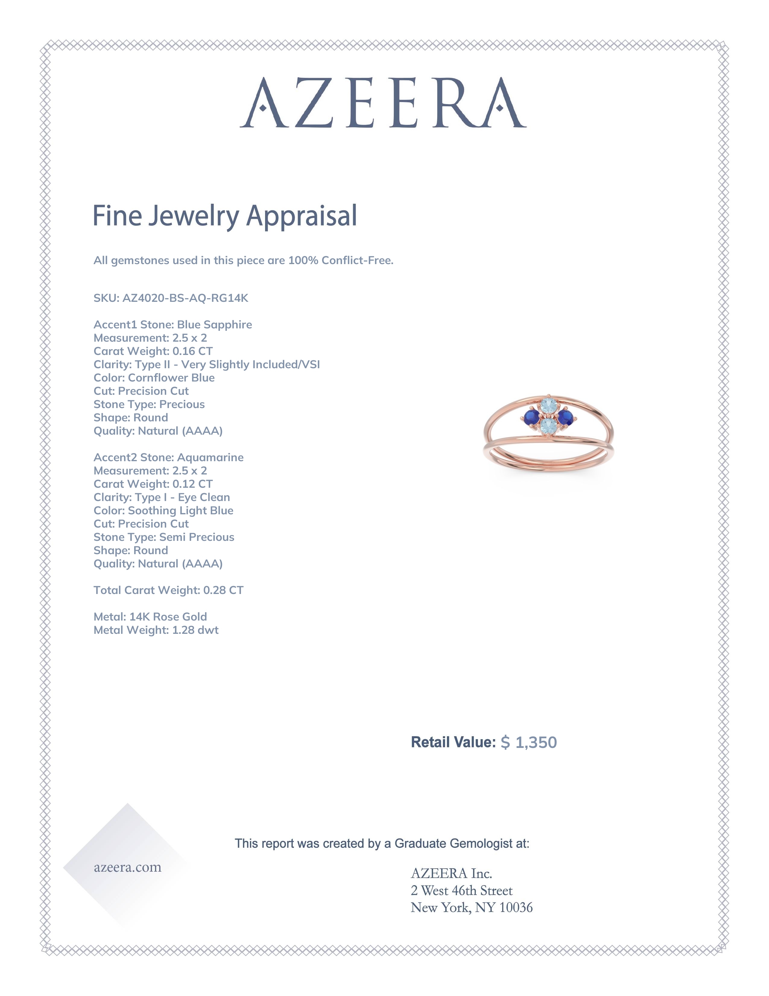 This Blue Sapphire and Aquamarine ring is the perfect addition to you wardrobe. Not only do we use the top 10% of gemstones available, we also make everything right here in New York City. Our Fashion Rings can be added to your collection of dainty rings, or even to your collection of stacking rings. This Ring Features A Diamond Shaped Cluster Of Small Round Brilliant Gems Between Two Slender Shanks Of A Double Line Setting. Ditch the worry, embrace the shine with free shipping, returns, resizing and a lifetime warranty.